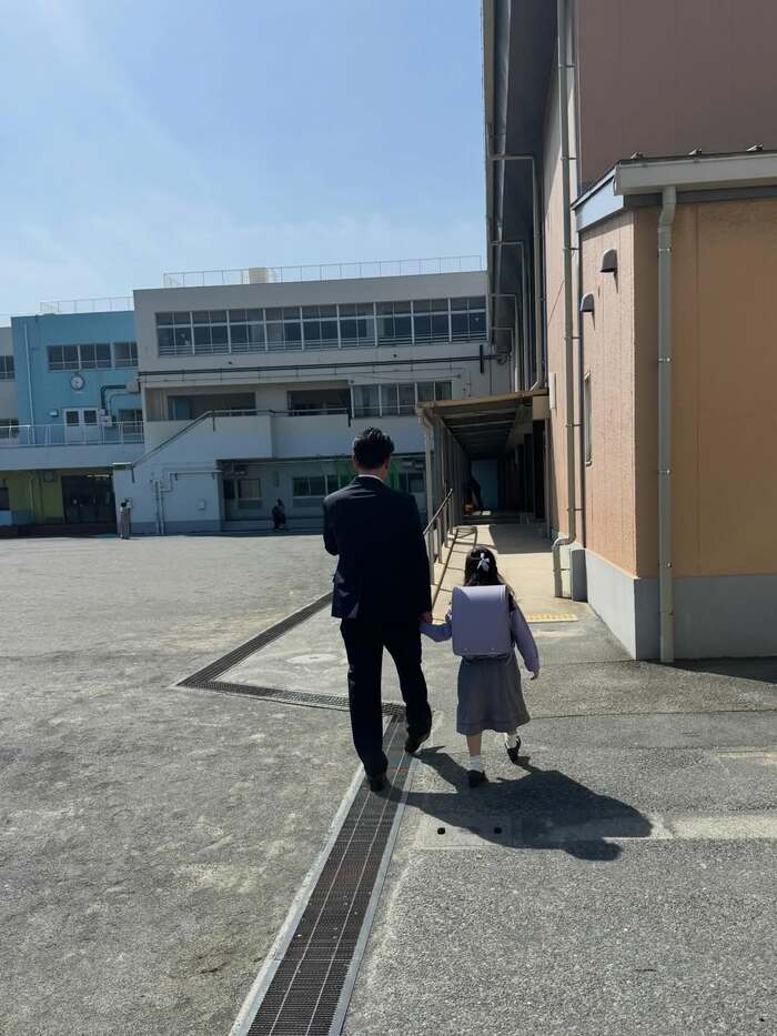 さらに、パパと手をつなぎながら校舎に向かっていく長女の姿も。