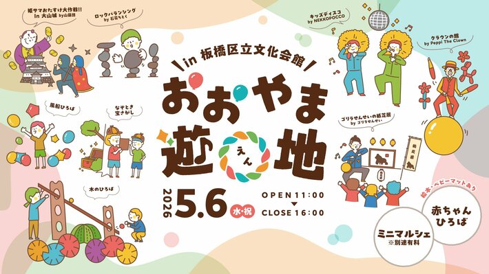 板橋区立文化会館(板橋区大山東町)では、5/6(水祝)に会館全館を会場とした子ども向けイベント「おおやま遊〇(えん)地」を開催いたします。