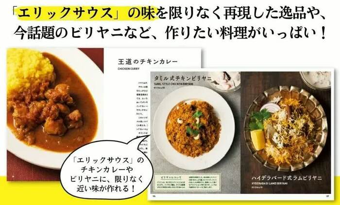 ――カレー以外にも、エリックサウスが人気に火をつけた「ビリヤニ」も、お店と同じ味が楽しめる本格的なレシピが紹介されています。