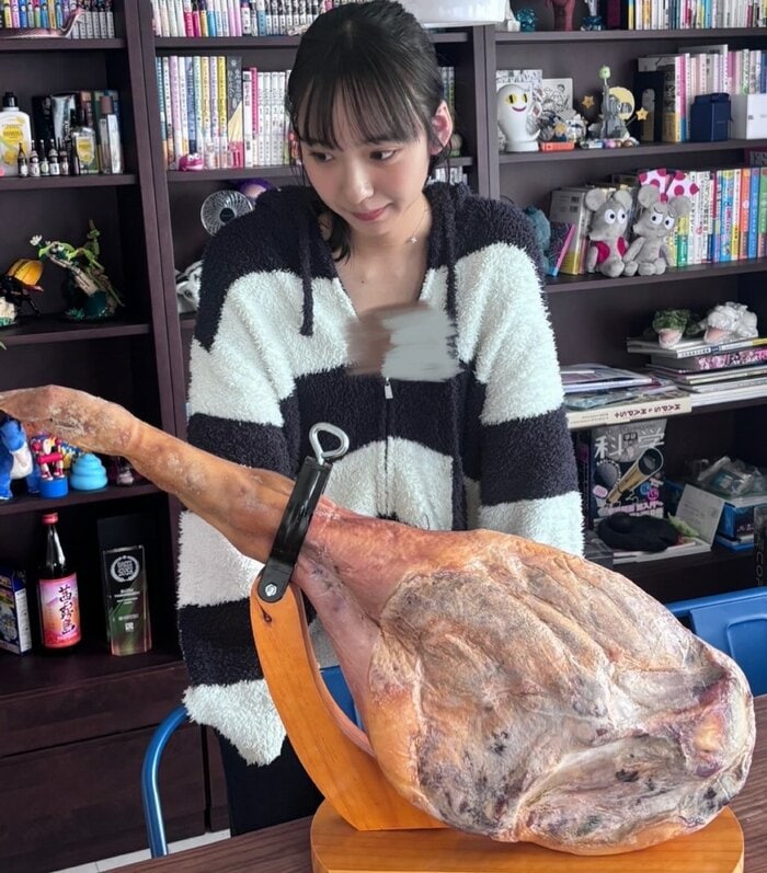 山之内さんは「どうして我が家に生ハム原木が?」とつづり、驚きの1枚の写真を公開。