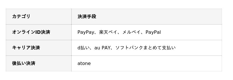 新たに追加される決済手段(計8種類)