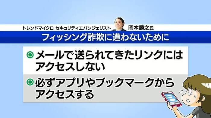 岡本さんは「詐欺に遭わないためには、送られてきたメールのリンクではなく、普段使っているHPやアプリから確認を」と、注意するべきポイントをアドバイスしました。
