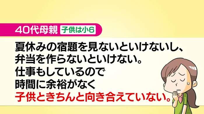 紹介されたのは、「夏休みも宿題の確認や、塾のための弁当作りに追われている。仕事もあるので子供と向き合えていない」という40代女性のお悩みです。