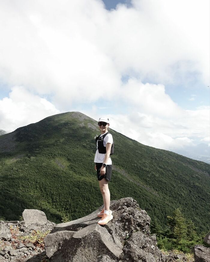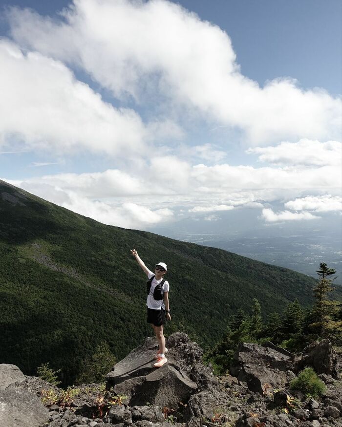 「トレラン記録!」というコメントとともに長野県と山梨県にまたがる八ヶ岳の西岳でトレイルランニングを楽しむ自身の写真を投稿した井上さん。
