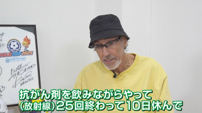 今のがんが、生きるか生きないの戦いで、誰か支えてくれなかったら、もう天井見て、点滴をずっと見てるだけだったと思う。(自分には)支えてくれる人がいて幸せだな、と。仲間がいて、何よりもすてきな妻がいるから、すてきな息子と娘がいるから、仲間も。仲間がなかったらやっぱり無理ですね。