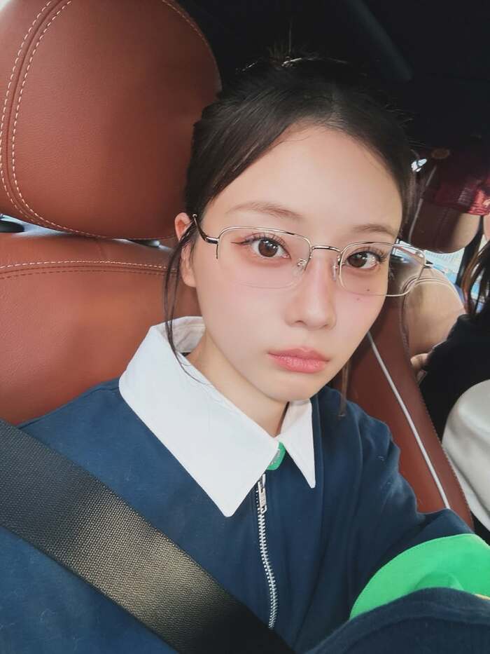 4月13日の投稿で、襟付きの濃いブルーのトレーナーコーデで髪をまとめ、メガネをかけた姿で助手席に乗るショットを公開した重盛さん。頬に手を添えながら首をかしげるしぐさに、思わずキュンとしてしまいます。