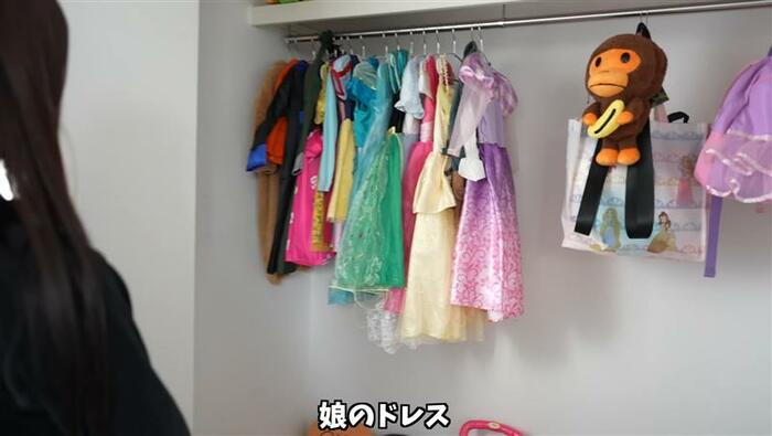 他にも、2段ベッドの向かい側にあるクローゼットには、おもちゃや長女のドレスが保管されていたり…。