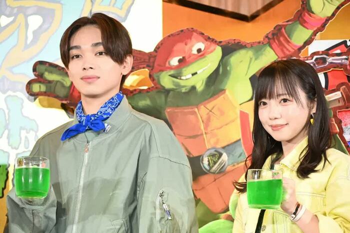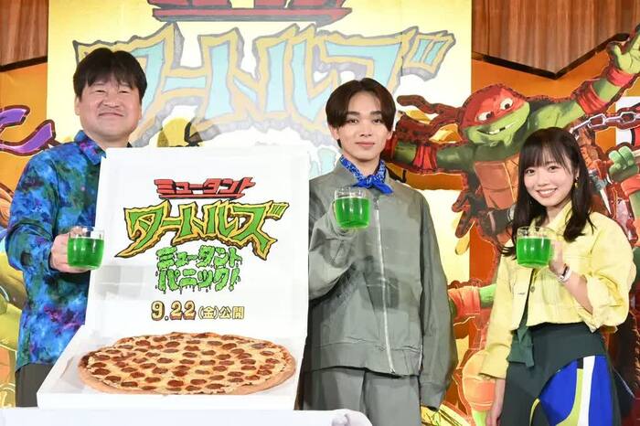 劇場版アニメ映画「ミュータント・タートルズ:ミュータント・パニック!」の日本語吹替版完成報告会見イベントが8月23日に行われ、吹替を務めた宮世琉弥さん、齊藤京子(日向坂46)さん、佐藤二朗さんが登壇しました。