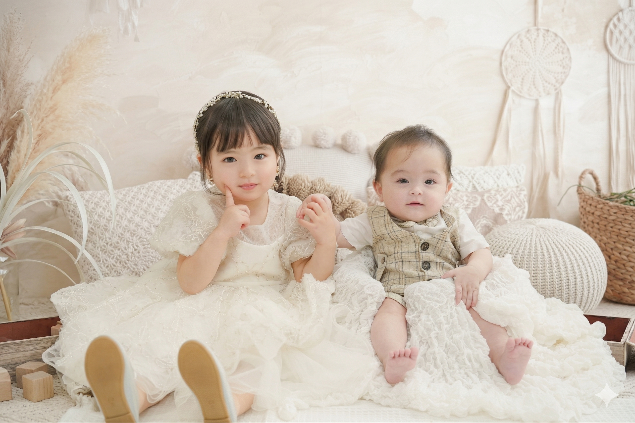 Studio Coffret(スタジオコフレ)完全プライベートの空間を2時間使用でき、リラックスした雰囲気の中でお子様の自然な姿を撮影できます。ヘアメイクはもちろん、インテリアや一部衣装もコフレオリジナルで取り揃えています。毎年撮影に訪れる根強いファンも。
