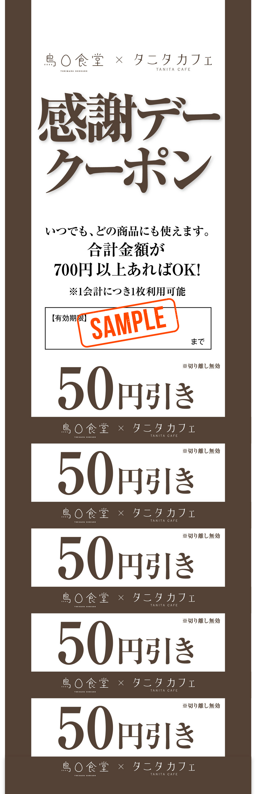 ※50円引き感謝クーポンは1組1枚の配布となります。