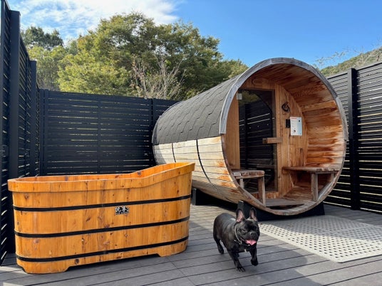 施設には宿泊も可能。愛犬との添い寝が可能なベッドルームやサウナ、プロジェクター、など、ご家族で楽しめる設備がたくさん。
