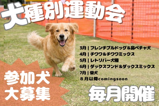 毎月犬種別運動会の開催毎月同じ犬種同士の交流を目的とした犬種別運動会を開催しています。