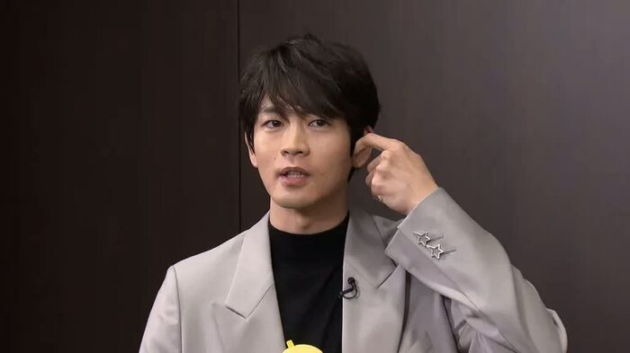 もみあげから耳の上の髪の毛を指しながら「この辺りとかは、自分で切りますね」と説明すると、鈴木アナは「役者さんなのに!?」と驚き。