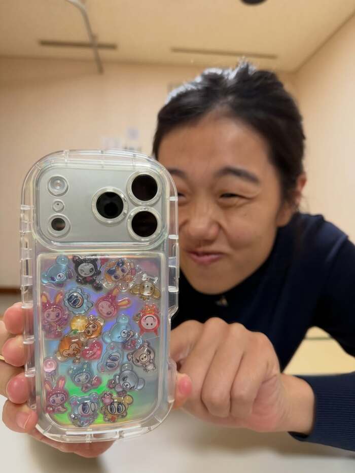 平成みあふれるケースについて、「ボンボンドロップシールをはがさないで切り抜いて入れたらシャカシャカケースに入ったのよー!」と、作り方を明かした横澤さん。