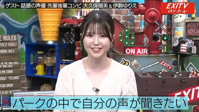 先輩の大久保さんは冷静に、そういうジャンルの仕事について「“中の人”をやってるって言わないというか、あまり明かさない、自分も(そういう経験が)ぶっちゃけある」と明かすと、伊駒さんは悲鳴をあげて「見習ってがんばります」と憧れの眼差しで見ていました。