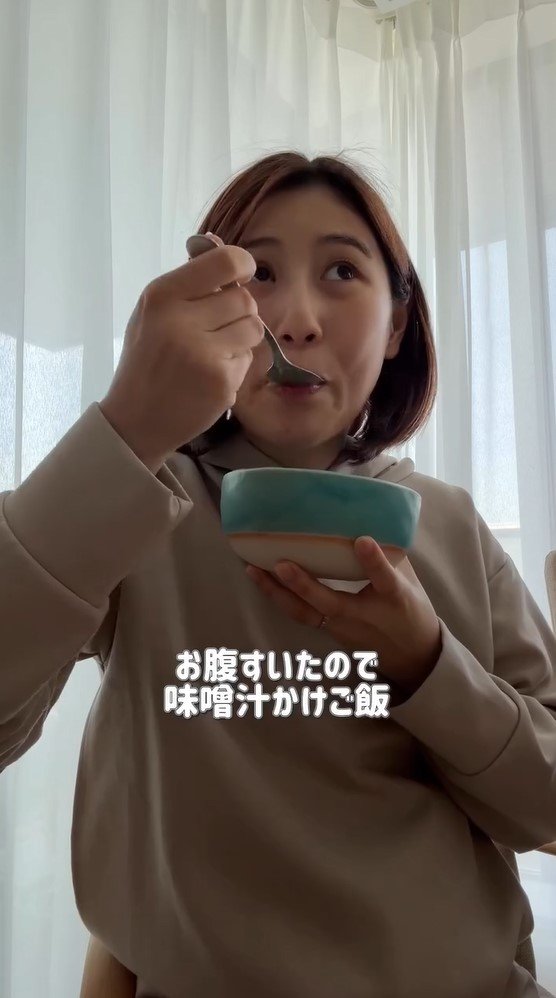 一通り掃除機をかけ終えると、“味噌汁かけご飯”をモグモグ。エネルギー補給です!