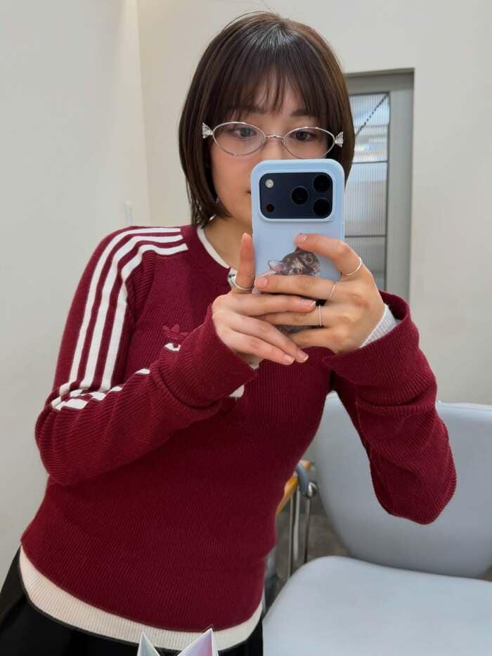 そして、繊細なフレームのメガネをかけた鏡越しの自撮りショットは、知的な魅力があふれていて、とっても素敵です。