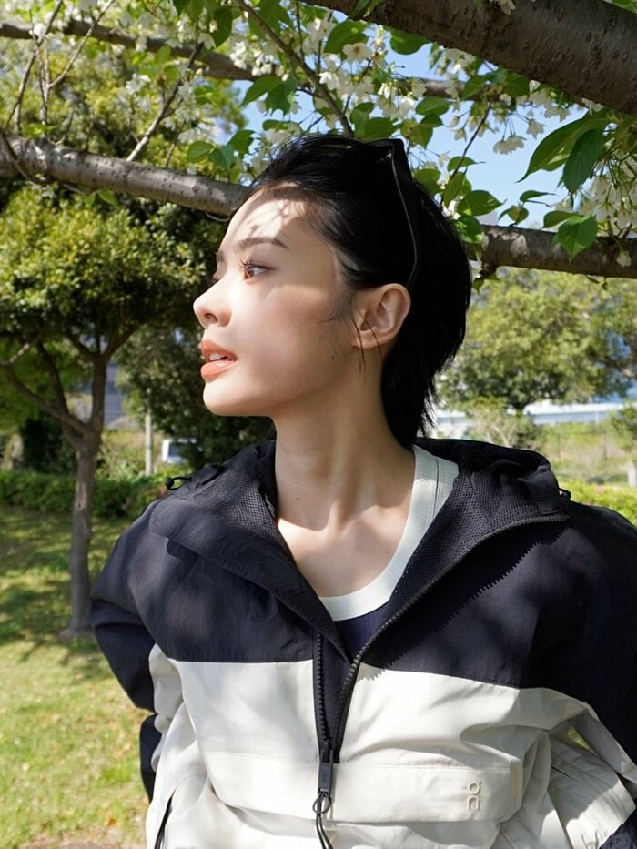 続いて、サングラスで前髪をかき上げ、木漏れ日に当たる横顔ショットはなんともクールです。