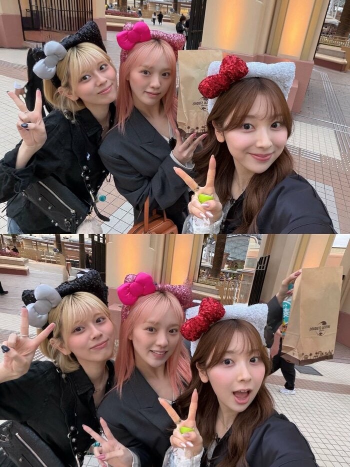 さらに、RIOさんとRIKUさんと3人で並び、楽しげにピースサインした自撮りショットも披露!色違いのおそろいのハローキティのカチューシャをつけた3人は、マスクやメガネなどの変装グッズを一切身につけておらず、隠しきれない華やかなオーラを放っています。