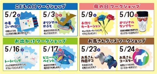 親子でご参加いただけるワークショップを日替わりで開催します。※小学生以下のお子さまが対象です。