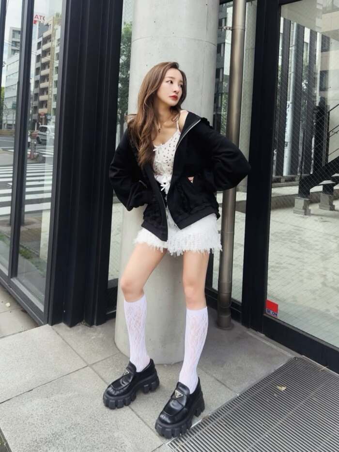 さらに、パーカーのポケットに手を入れ、柱に寄りかかったようなショットでは、すっと伸びた長い脚が際立ち、抜群のスタイルに思わずうっとり。ファンにはたまりませんね!