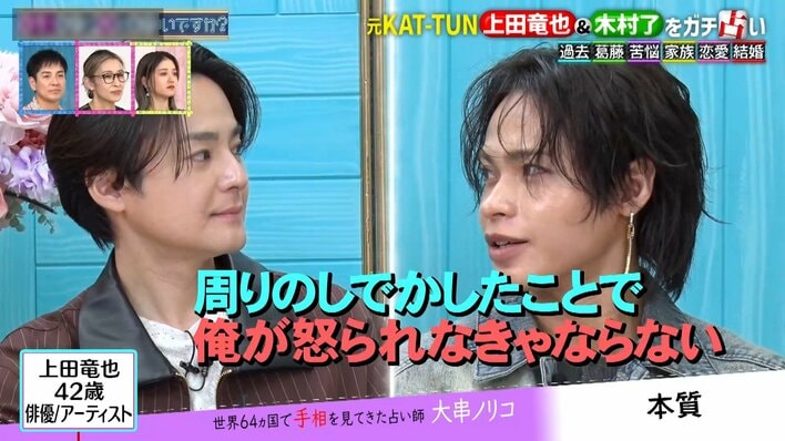 4月19日放送の『突然ですが占ってもいいですか?』は、上田竜也さんと木村了さんが、大串ノリコさんに占われました。