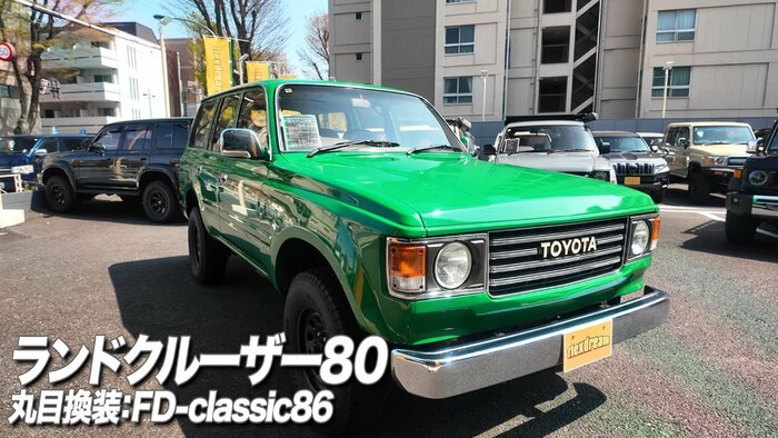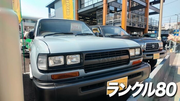 そして、分厚くどっしりしたボディーのランドクルーザー80は、角目が4灯横に並んでいて、武骨で硬派な雰囲気があります。