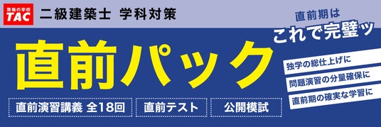 一級、二級建築士対策講座を展開しているTAC株式会社(東京都千代田区、代表取締役:多田敏男)は、令和8年建築士学科試験に向けて直前対策パックを販売中です。