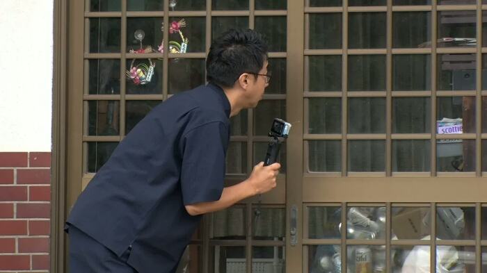 「ゴミ置いてあるよ、入口に…」。3人が到着すると、エントランスからして廃虚感満載。横には「ようこそ」と言わんばかりにゴミの山がレイアウトされています。しかし、幸楽の真骨頂は、中に入ってから。