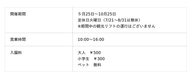 期間限定運行のリフト:4月22日~5月24日