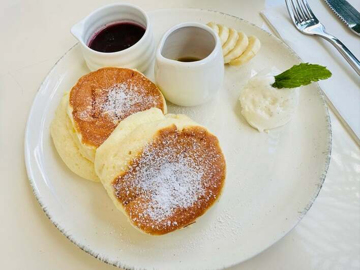 ふわふわのパンケーキにはおいしそうな焼き色がついていて、見ているだけで食欲がそそられますね。