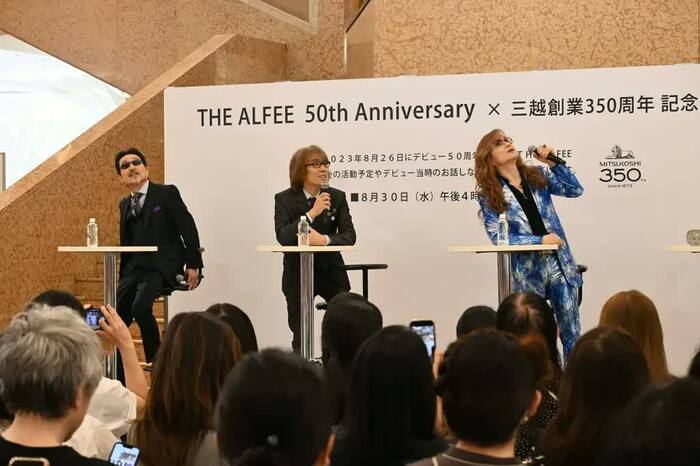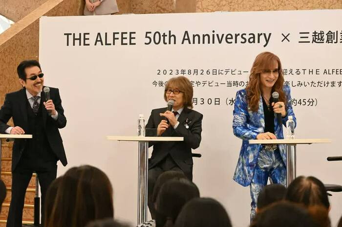 現在、日本橋三越本店にて、創業350年を迎える三越と、デビュー50周年イヤーを迎えたTHE ALFEEのWメモリアルイヤーを記念したコラボレーションイベント「三越創業350周年 × THE ALFEE 50th Anniversary」を開催中。