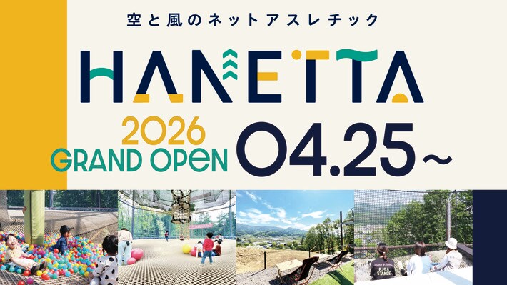 川場リゾート株式会社は、群馬県川場村のネットアスレチック施設「HANETTA」の2026年シーズン営業を4月25日より開始いたします。「HANETTA」は、自然の中で体を動かしながら遊べる屋外型ネットアスレチック施設で、子どもから大人まで幅広い世代が楽しめるアクティビティを展開しています。開放感あふれるロケーションの中、気軽に非日常の体験ができる点が特徴です。