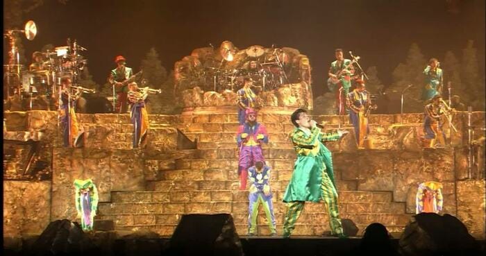 ツアーのコンセプトは、シルク・ドゥ・ソレイユのサーカス演目のひとつ「サルティンバンコ」。メンバーは、サーカスを意識した華やかな衣装で登場。圧倒的な歌声、演奏はもちろん、曲と曲の間の演出も凝っており、終始目が離せないパフォーマンスを披露しました。
