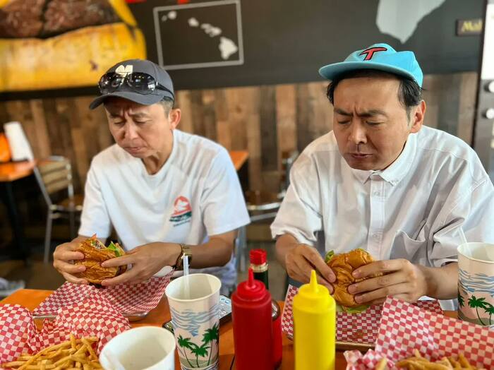 一行が向かったのは、ハワイではおなじみの「ウルフギャング」。腹ペコの有吉さんらがメニューを見ていると、世界中に21店舗を持つ「ウルフギャング」のオーナー・ウルフギャングさん自らあいさつに。
