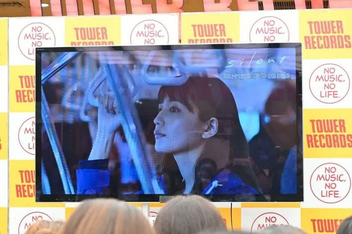 イベントは、紬が働く店として話題になったCDショップ「タワーレコード渋谷店」で行われました。