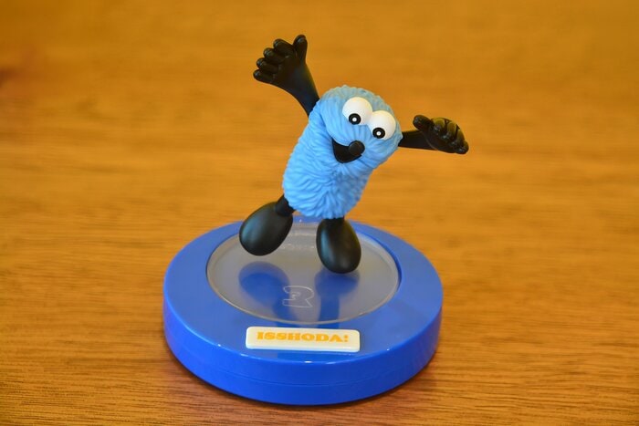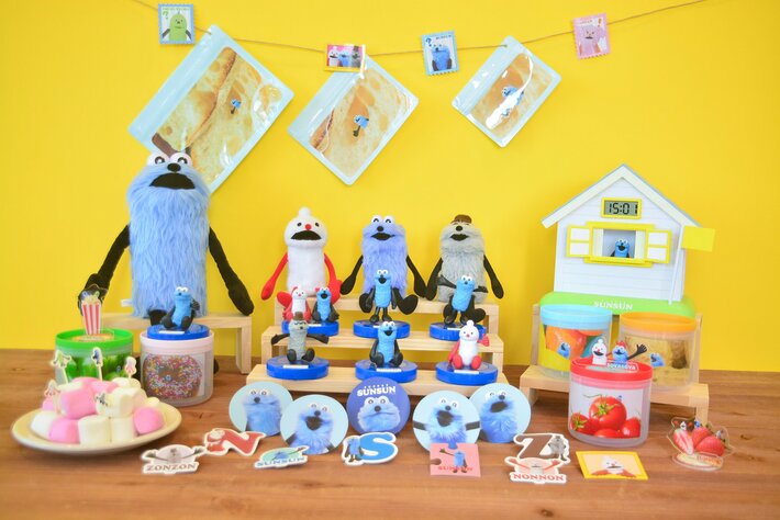 スンスンだけでなく、ノンノンとゾンゾンも登場。台座にフィギュアを乗せられる仕様になっていて、台座のボタンを押すと「ISSHODA!」など、ボタンに書かれたワードの内容をしゃべります。