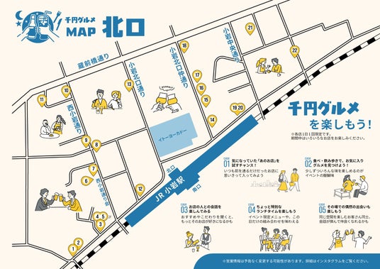 ■内容:小岩駅周辺の飲食店にて1,000円で1フード1ドリンクの特別なセットを販売