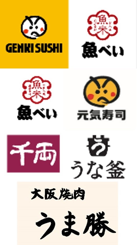 現在、国内では地域密着型で値頃感の「元気寿司」、時代の変化とともに進化を続ける「魚べい」、本物志向の「千両」、リーズナブルなうなぎ料理を提供する「うな釜」、そして世界と日本をつなぐ 新ブランド「GENKI SUSHI×魚べい」に加え、焼肉をもっと身近な存在として地域に届ける「大阪焼肉