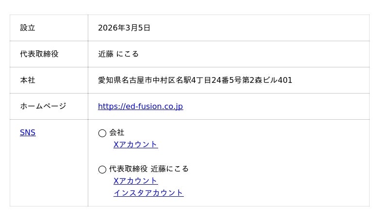株式会社EdFusionこどもたちの「原体験・環境・目標」を大切にしながら、未来につながる学びを提供する教育企業です。単なる知識の習得ではなく、実際の体験を通じて好奇心や主体性を育てることを重視しています。独自のプログラムとして、探究型の学びを支える「ButterflyBase」や、こどもたちが自分の考えを発信し挑戦する場であり、目標となる大規模イベント「THE HERO SUMMIT(ヒロサミ)」を展開。これらを通じて、一人ひとりが自分の可能性に気づき、目標に向かって行動できる力を育みます。EdFusionは、こどもたちが未来を自分らしく切り拓くための“きっかけ”と“環境”を創り続けています。