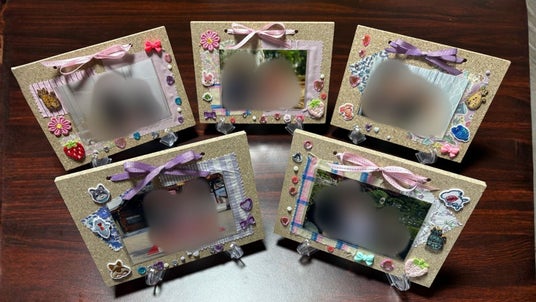 木材の端材を使用して制作された卒園記念のフォトフレーム。園児一人一人の個性あふれる作品が完成。