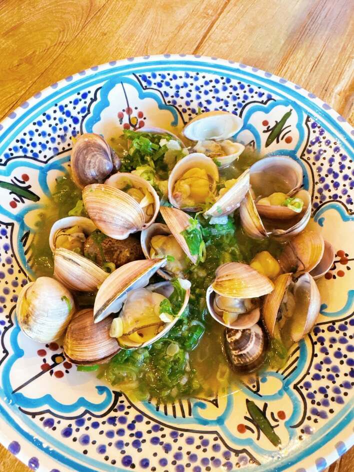 まず、公開したのは鮮やかな柄の皿に盛られた「アサリの酒蒸し」。