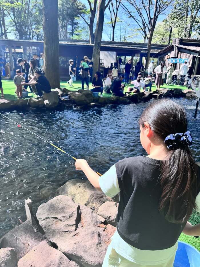 ニジマス釣りをしたそうで、一生懸命、竿を持つ長女は真剣そのもの!ついつい「頑張れ!」と声をかけたくなってしまいます。