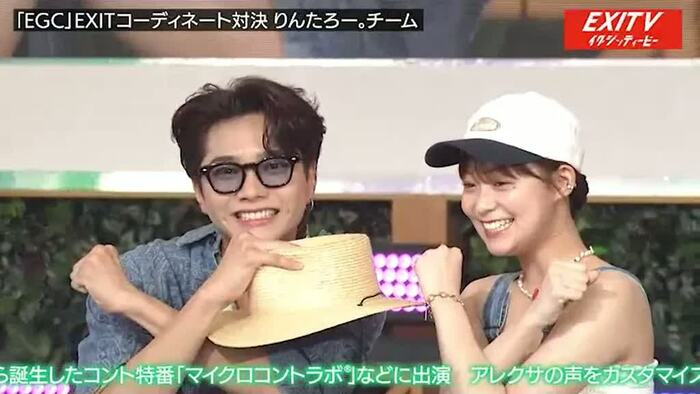 りんたろー。チームと兼近チームに分かれた「カップルコーディネート対決」は、2人がテーマに沿って考案したコーデをOWV中川さん・浦野さん、EXITVガールズが着用。さらに男性陣はカメラに向かって告白を実演するという企画です。