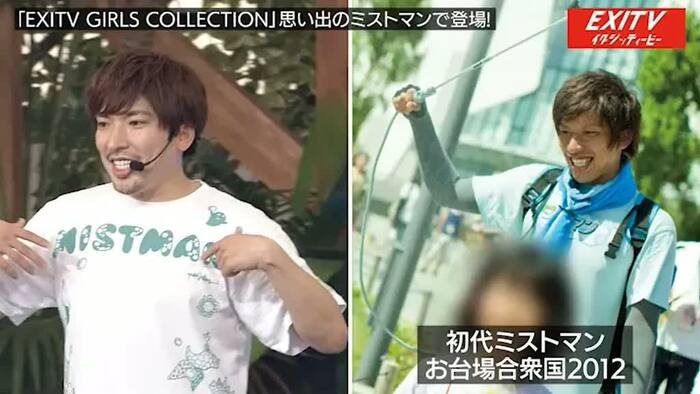 「お台場冒険王2023」の「SUMMER SPLASHスタジアム」に思い出のミストマン姿で現れたりんたろー。さん(初代ミストマン)と兼近さん(4、5代目ミストマン)の姿に、会場からは大きな歓声が。