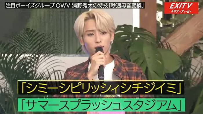 ここで、EXITの“公式後輩”のボーイズグループ・OWV(本田康祐さん、中川勝就さん、浦野秀太さん、佐野文哉さん)が登場。自己紹介を終えると、話題は浦野さんの特技「秒速母音変換」へ。