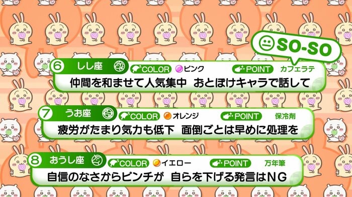 『めざましテレビ』で放送中の「ちいかわ占い」 テレビ放送がない日はお休みで、月~土:朝7時以降に更新予定です。