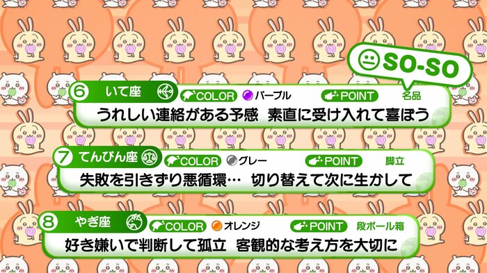 『めざましテレビ』で放送中の「ちいかわ占い」 テレビ放送がない日はお休みで、月~土:朝7時以降に更新予定です。