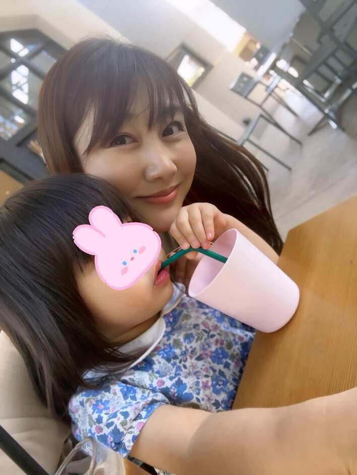 自然光がたっぷり差し込む開放的なカフェのような空間で、次女との親子2ショットを公開しました。カメラに向かって優しくほほ笑む安さんの膝の上には、青系の花柄の服を着た次女の姿が。ピンクのカップに差した緑のストローで飲み物を口にする様子から、リラックスした穏やかな時間が伝わり、見ているこちらまで温かい気持ちになります。
