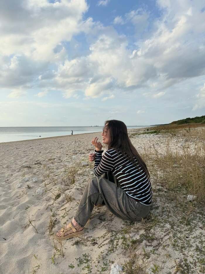 そんな海を目の前にした砂浜に座る内田さんの表情はニッコニコ!